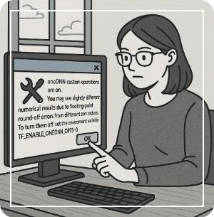 해당 메시지는 오류가 아닌 정보성 알림으로, oneDNN 최적화 연산(custom operations)이 활성화된 상태에서 부동소수점(floating-point) 연산의 순서에 따라 작은 수치적 차이가 발생할 수 있다는 점을 사용자에게 안내하는 것이다. 본 보고서에서는 이러한 알림의 의미와 해결 방법, 그리고 최적화 기능의 활성화 및 비활성화에 따른 고려사항을 정리한다.