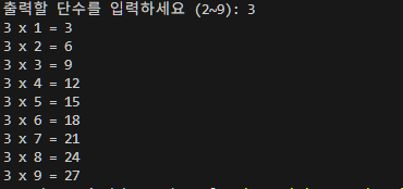 dan = int(input("출력할 단수를 입력하세요 (2~9): "))