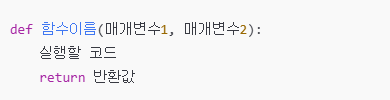 파이썬에서는 def 키워드를 사용하여 함수를 정의합니다.